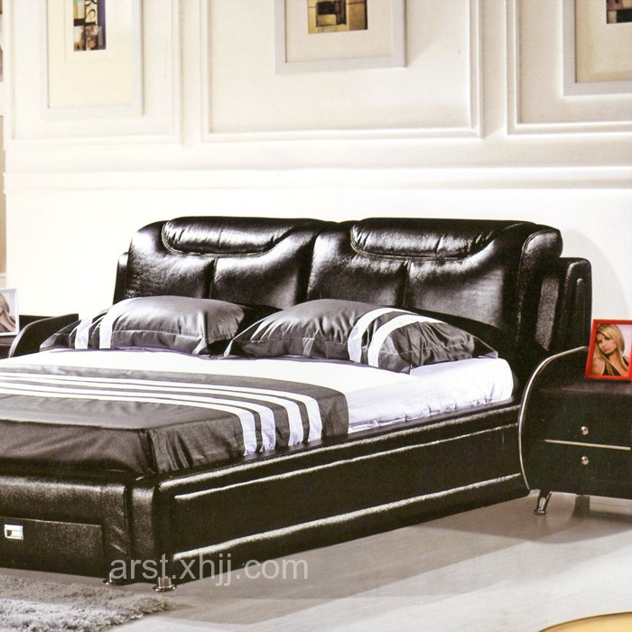 软包真皮卧室大床 黑色2.4米双人床P15-5_相关产品